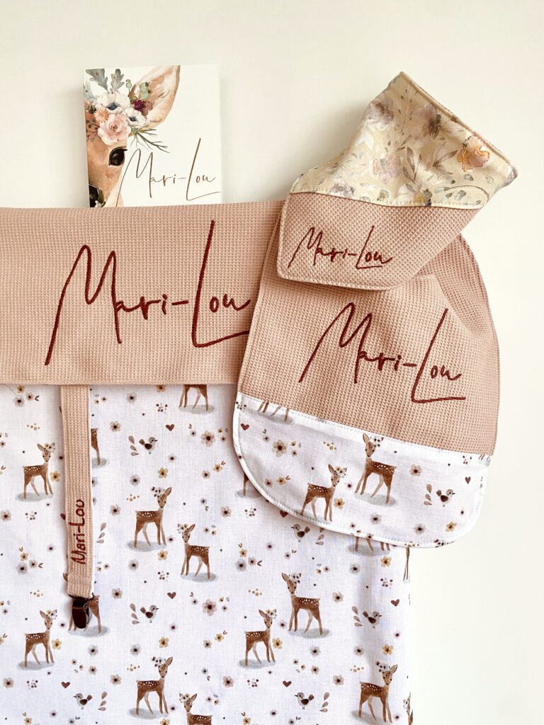 Ja. Het borduursel wordt zoveel mogelijk afgestemd op het geboortekaartje, met hetzelfde of een gelijkaardig lettertype en eventuele illustraties. (dit tegen een meer prijs)